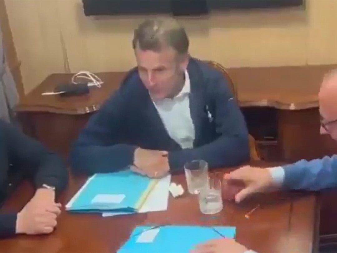 Görüntülerde Macron'un masasındaki beyaz cisimle oynarken göründüğü dikkat çekti.