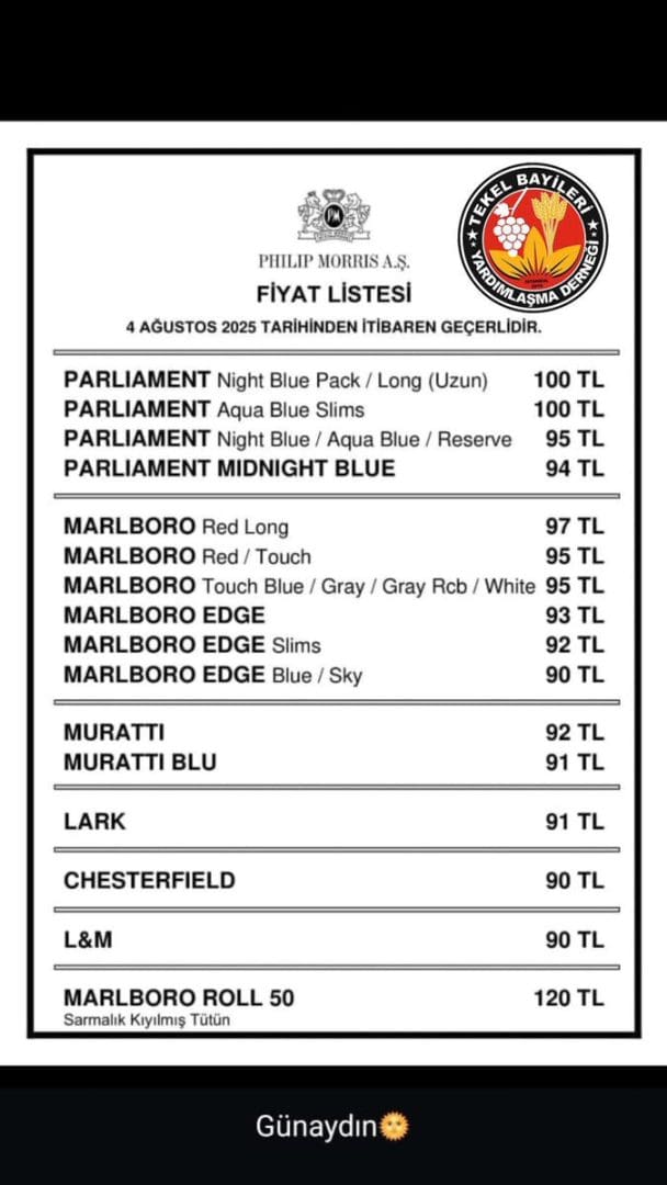 BAT ve JTI gruplarının fiyatlarını güncellemesinin ardından, bu kez Philip Morris Grubu fiyat artışıyla gündeme geldi. Yeni yapılan 10 TL’lik zamla birlikte, gruptaki en ucuz sigara 90 TL’ye, en pahalı ürün ise 100 TL’ye çıktı. Böylece sigarada güncel fiyat aralığı yeniden şekillendi. İşte güncel fiyatları: